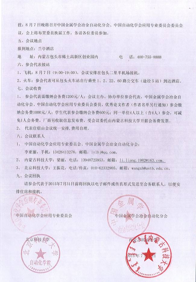 会议时间:2015年8月8日-10日,会后参观包钢等。