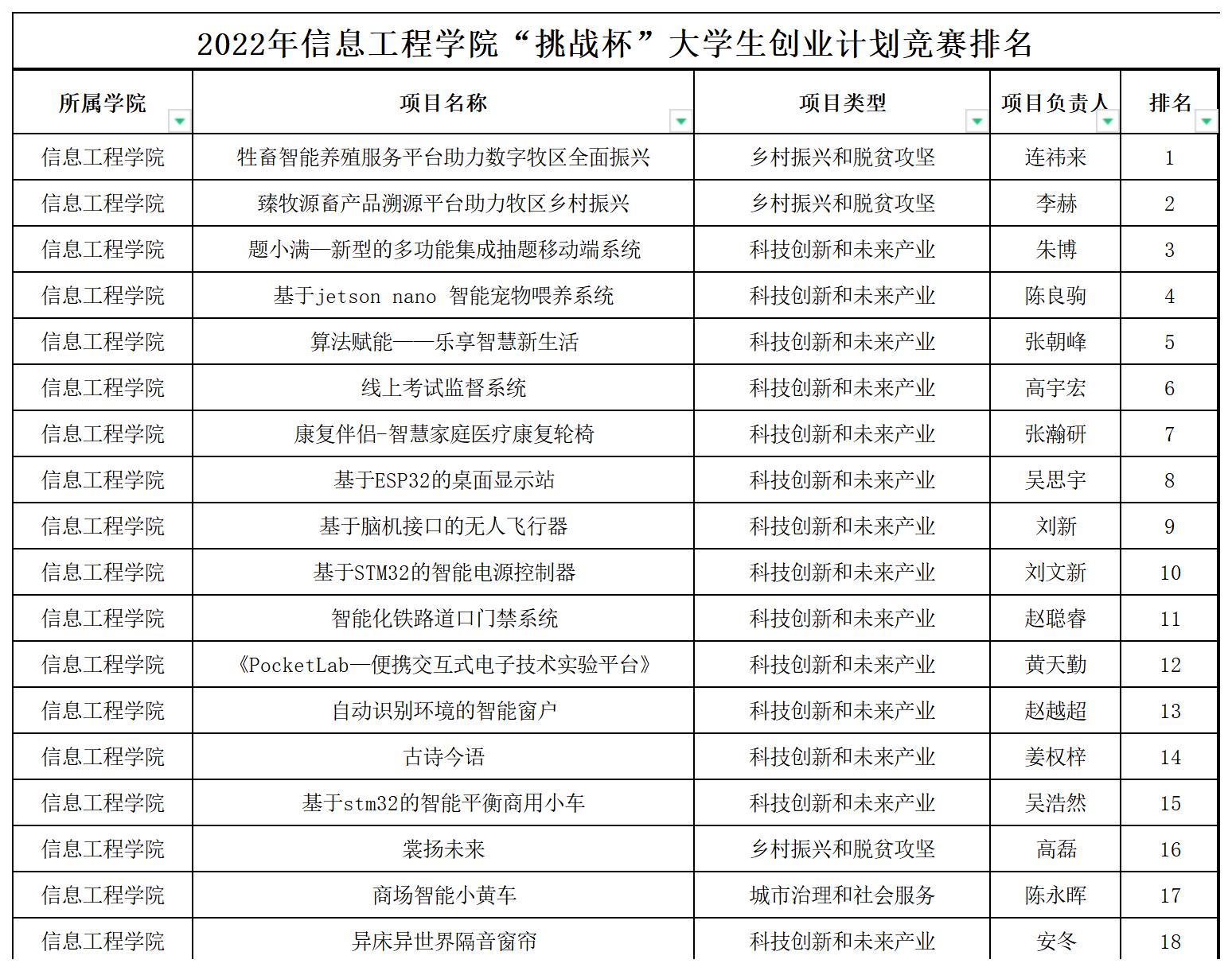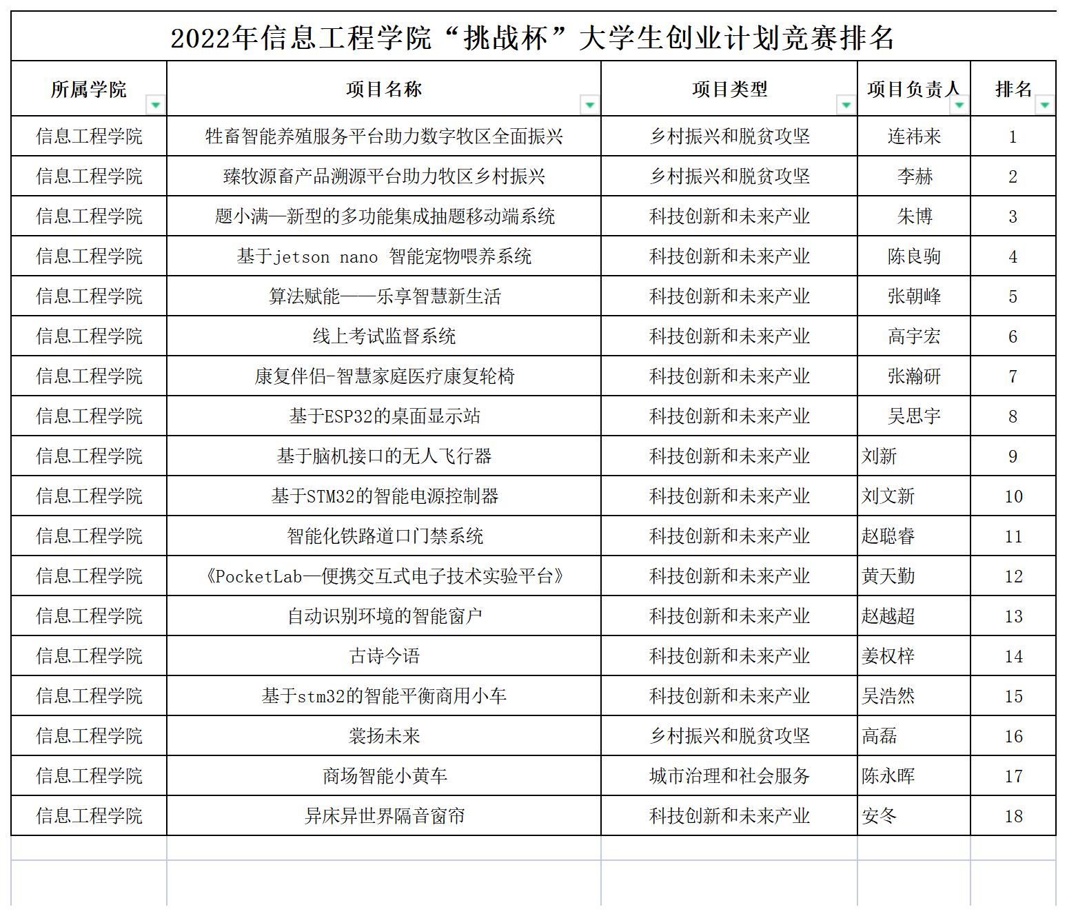 信息工程学院第十三届“挑战杯”全区大中学生创业计划竞赛院内赛结果公示(排名)