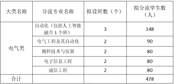 按电气大类招生录取的全日制本科生,在招生大类内进行专业分流,不得跨类进行分流。高考时录取到具体专业的不参加专业分流。相关具体计算办法和分流计划见附件1、附件2。