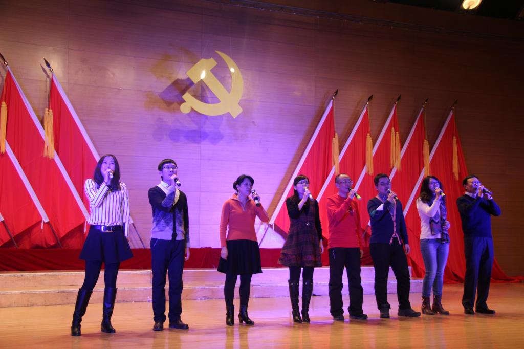 晚会在一曲《唱支山歌给党听》中拉开了帷幕,伴舞时而轻盈优美,时而活力四射。晚会分为三个篇章,第一章飘扬的旗帜,电气党支部的《国家》情深意切,《呼儿嘿呦》轻快有力,团总支的《大中国》激情澎湃,唱出了当代大学生对祖国的深深热爱和赤子之心。第二章峥嵘的岁月,由各党支部书记合唱的《打靶归来》再现了解放军的艰苦奋斗和苦中作乐的卓绝精神。舞蹈《请到草原来》让大家领略到蒙古族的豪迈和热情,办公室的《走向复兴》唱出了所有中华儿女的中国梦。来自通信党支部的《明天会更好》将晚会推向高潮。最后一章复兴的征程,在《保卫黄河》汹涌激昂的旋律中,舞动出共产党勇贯三军的气势。电信党支部的《中国军魂》唱出了中国军人的铮铮铁骨和不屈意志。在《歌唱祖国》振奋人心的歌声中,晚会落下帷幕。