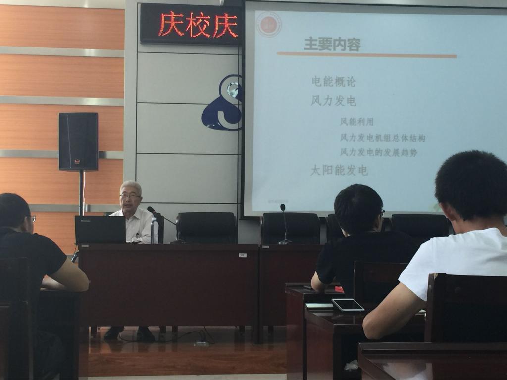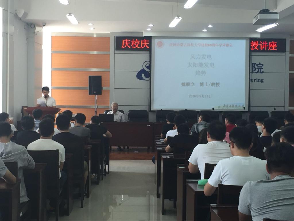 为庆祝我校建校60周年,9月14日下午15:00,世界杯官网邀请魏毅立讲授为学院电气专业老师和同学们进行讲座,讲座内容为“风力发电和太阳能发电”。讲座持续两个小时,魏教授的精彩讲座不断引起同学们的掌声。