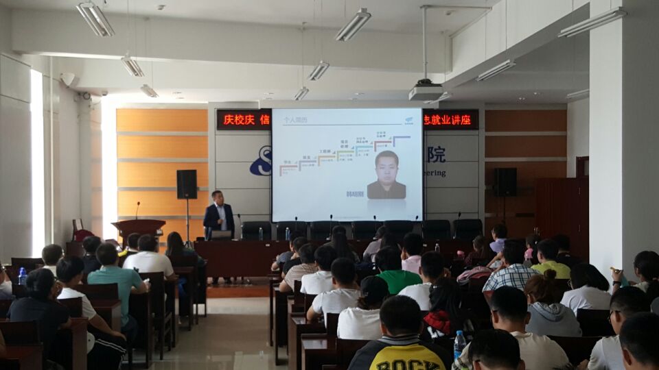 庆祝我校建校60周年,9月21日下午15:00世界杯官网邀请韩明刚校友来校为同学们做励志就业讲座。同学们从讲座中受益匪浅,并邀请韩总来校招聘。