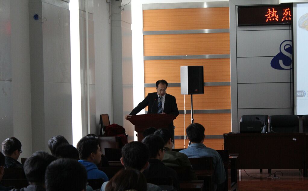 王俊杰教授以PET imaging of brain function(脑功能的正电子发射断层成像研究)为讲座专题,将药物如何影响人类的大脑以及如何导致一些人上瘾,甚至失控的问题作为切入点,进行了具体分析。通过PET-FDG脑成像方法、PET /MRI成像、Patlak分析、PET和MRI信号讨论潜在的空间差异的起源,并以具体事例——利他林口服治疗多动症形象生动的阐述了人类大脑的药物动力学理论。讲座期间王教授和我校师生展开了热烈的交流和讨论。