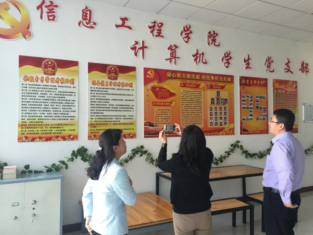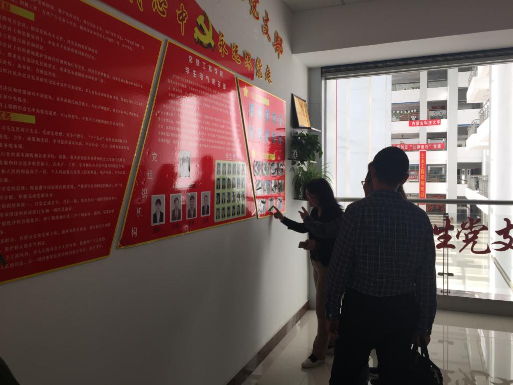 学院领导向包头市委组织部领导一行介绍了学院的发展历史、党总支基本情况以及各个专业学科的发展概况,市委组织部领导在听取汇报后对信息工程学院有了更深地认识。在校党委组织部领导、学院领导、老师们的陪同下,市委组织部领导参观了各学生党支部责任示范区、党支部资料室以及大学生科技创新社团实训基地。参观示范区时,学生党支部书记介绍了党支部的发展和日常工作,市委组织部领导们首先肯定了各党支部的建设,并指出在基层党支部建设中要加强思想政治工作,让学生党员自身各项综合素质在平时学习、生活中得到逐步提升,尤其是在基础学业中,切实做到学用转化,学以致用;参观党支部资料室时,领导们对资料存放工作给予良好评价,最后,市委组织部领导一行对学院党总支工作、 党支部工作给予肯定,指出对学生的各项工作重点在于常抓不懈,希望学院的党建工作更上一层楼。学院领导表示在基层党支部、学生组织工作上还要大力改进、支持各项工作的完善与创新,并对市委领导的指正表示感谢。