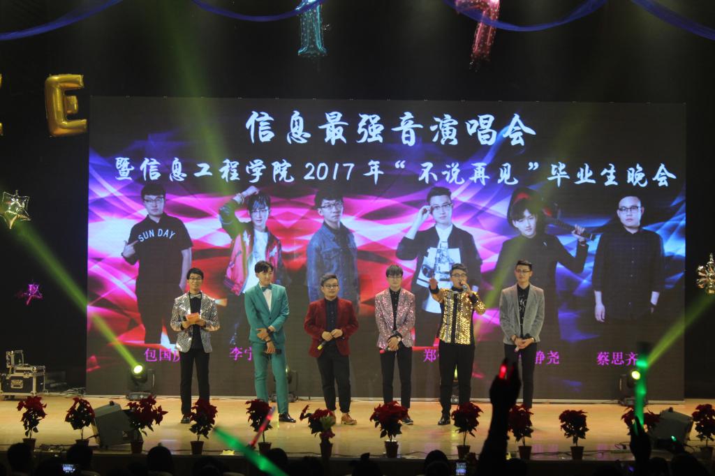 2017年6月5日晚19时,信息最强音演唱会暨信息工程学院2017年“不说再见”毕业生晚会于校音乐厅成功举办。世界杯官网党总支书记崔桂梅教授,副书记段志峰老师,副院长杨立东教授,包轻工学生科科长、团总支书记石永涛老师,以及世界杯官网行政办公室各位老师,13级各班辅导员老师等出席本次晚会。