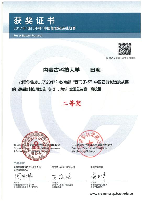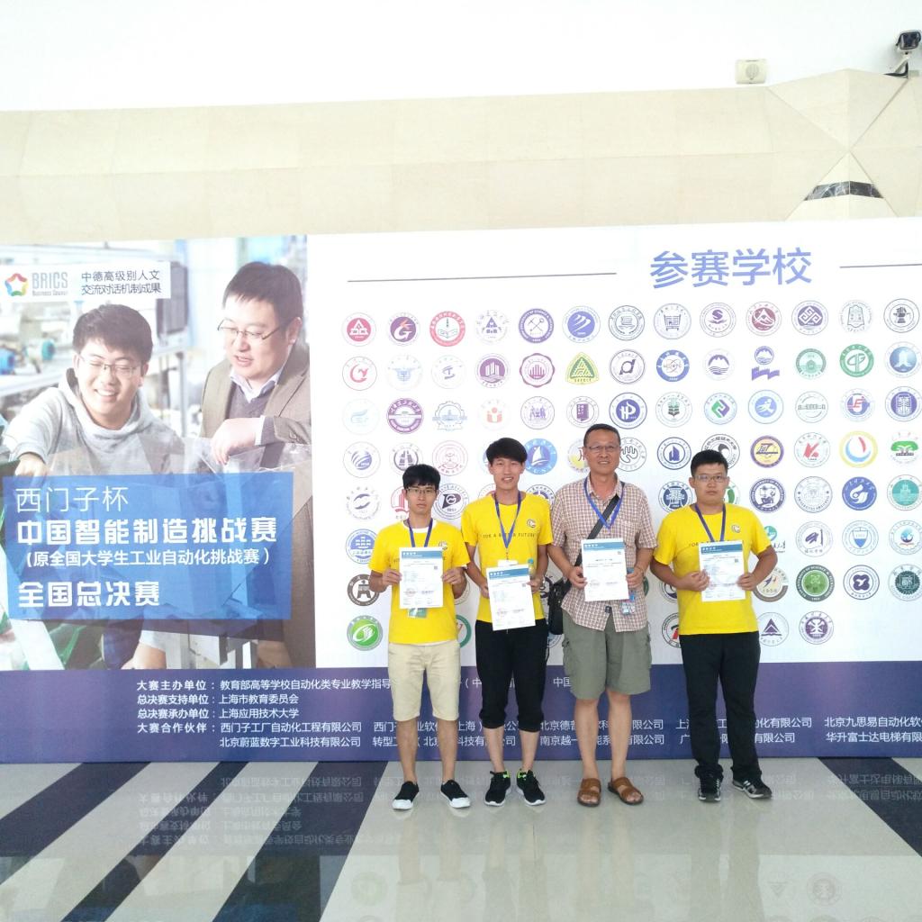 2017年8月24日至30日,由教育部高等学校自动化类专业教学指导委员会、西门子(中国)有限公司和中国仿真学会联合主办的2017年“西门子杯”中国智能制造挑战赛总决赛在上海应用技术大学举行。经过全国12个分赛区的初赛选拔,来自包括我校、同济大学、华中科技大学、北京科技大学、北京理工大学、东北大学等133所高校的600多支队伍参加了总决赛的比赛。