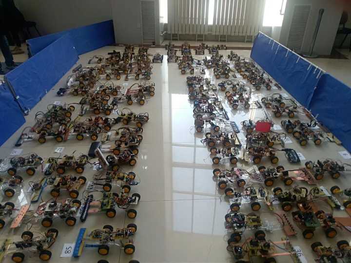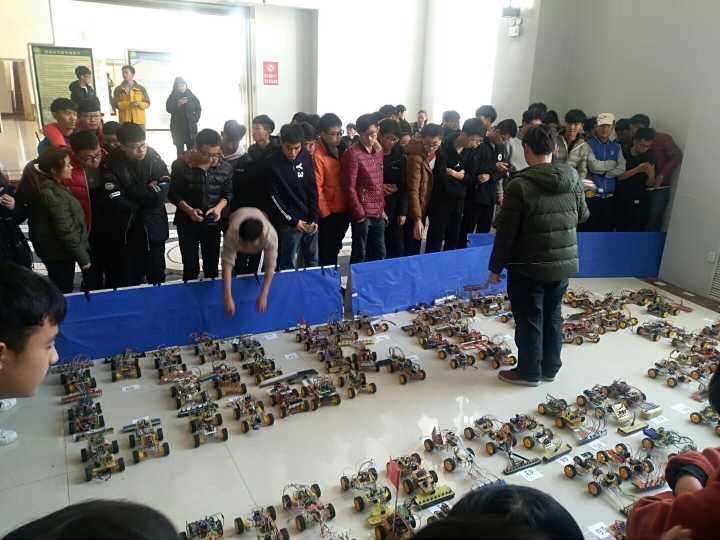 本次大赛吸引了来自信息工程学院111支、机械学院33支、矿业与煤炭学院3支、材料与冶金学院3支、能源与环境学院3支、土木工程学院1支等154支参赛队,近400余名学生参赛。经过初赛的激烈选拔,共有62支队伍闯进决赛。决赛分为提高组和普通组,提高组我们为其设计了与"恩智浦"杯智能车大赛中才会出现的圆环跑道和上坡跑道。