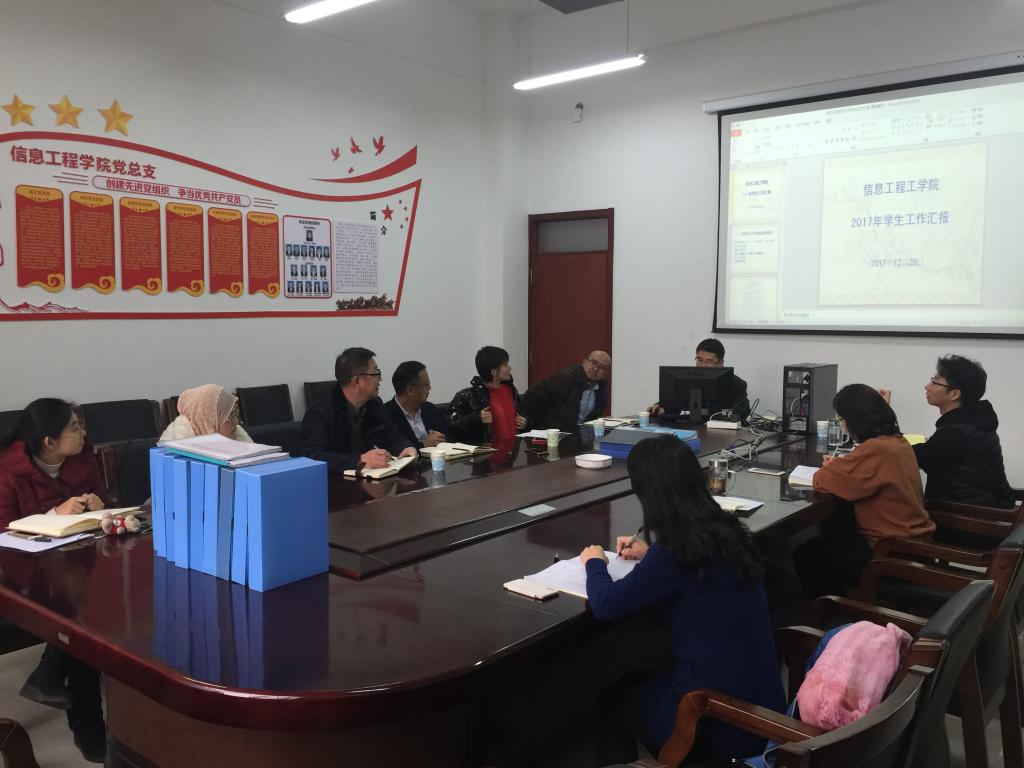 2017年12月29日,学生工作委员会、学工部张春明、王树彤及相关老师一行五人来信息学院进行学生事务工作考核。