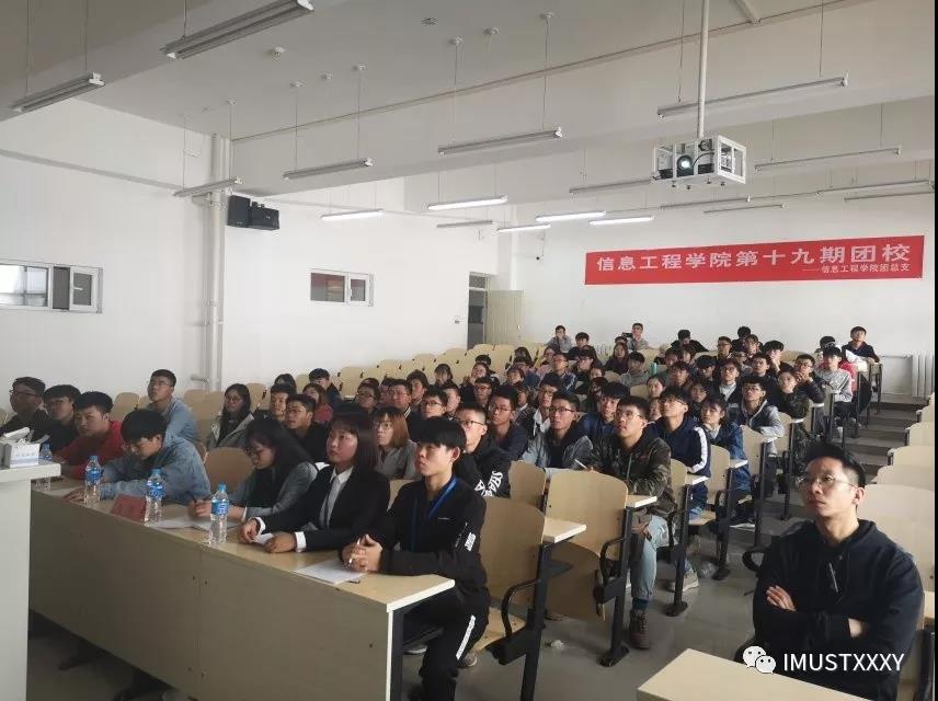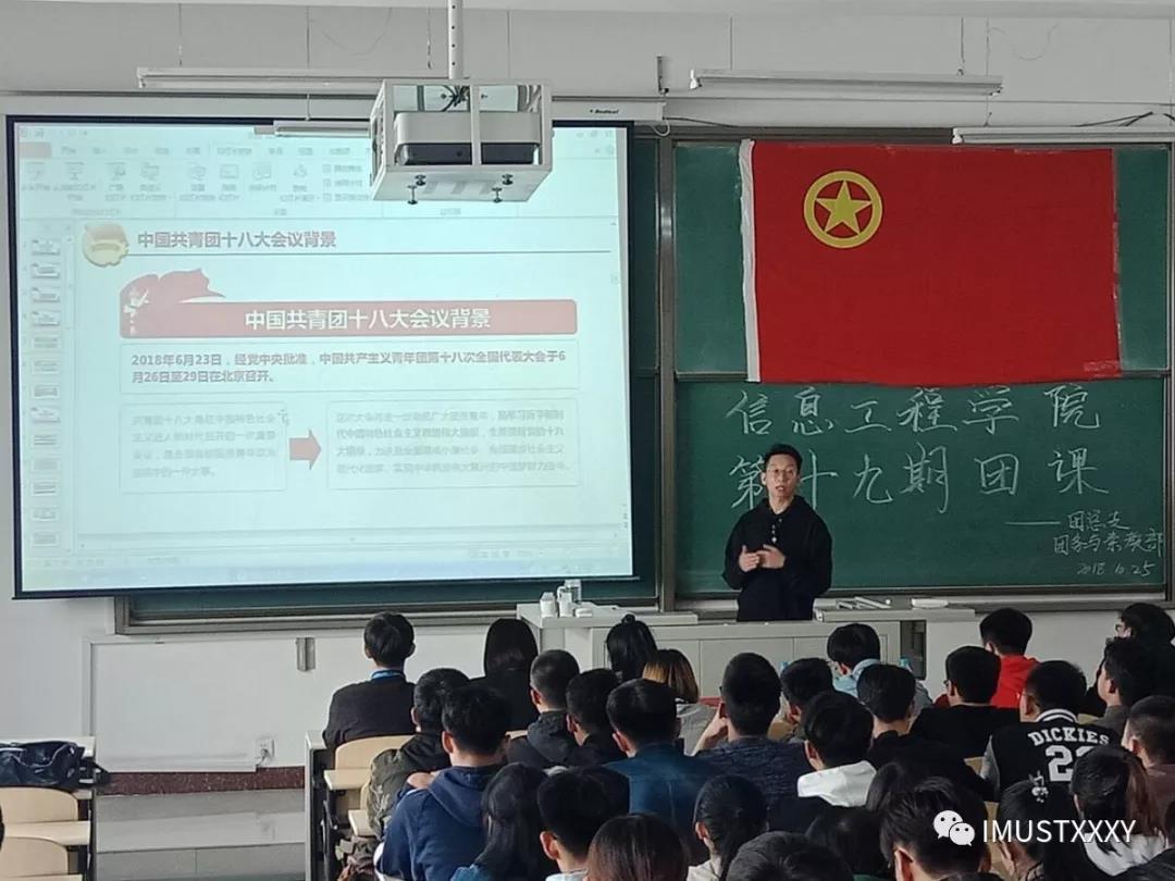 为了进一步加强团员的政治思想观念,增强团员对团组织的深刻认识,2018年10月25日中午12点40分,由世界杯官网团务与素教部主办的信息工程学院第十九期团课开幕式暨第一次团课在逸夫楼G302举行。莅临本次开幕式的有团总支书记刘新老师,团总支副书记张恩佑学长。