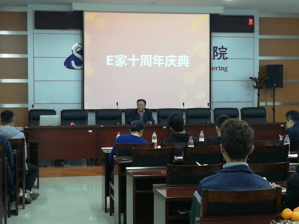 十年霜雪磨一剑,风雨兼程致力行。11月16日星期五晚七点半,信息工程学院E家科技园在逸夫楼F302迎来了十周年庆典。信息工程学院院长李宝山教授、副院长杨立东教授、团总支书记刘新老师、计算机党支部书记杨文君老师、E家科技园指导教师郭宇老师、学工办副主任刘吉宇老师,以及E家科技园全体成员参加活动。