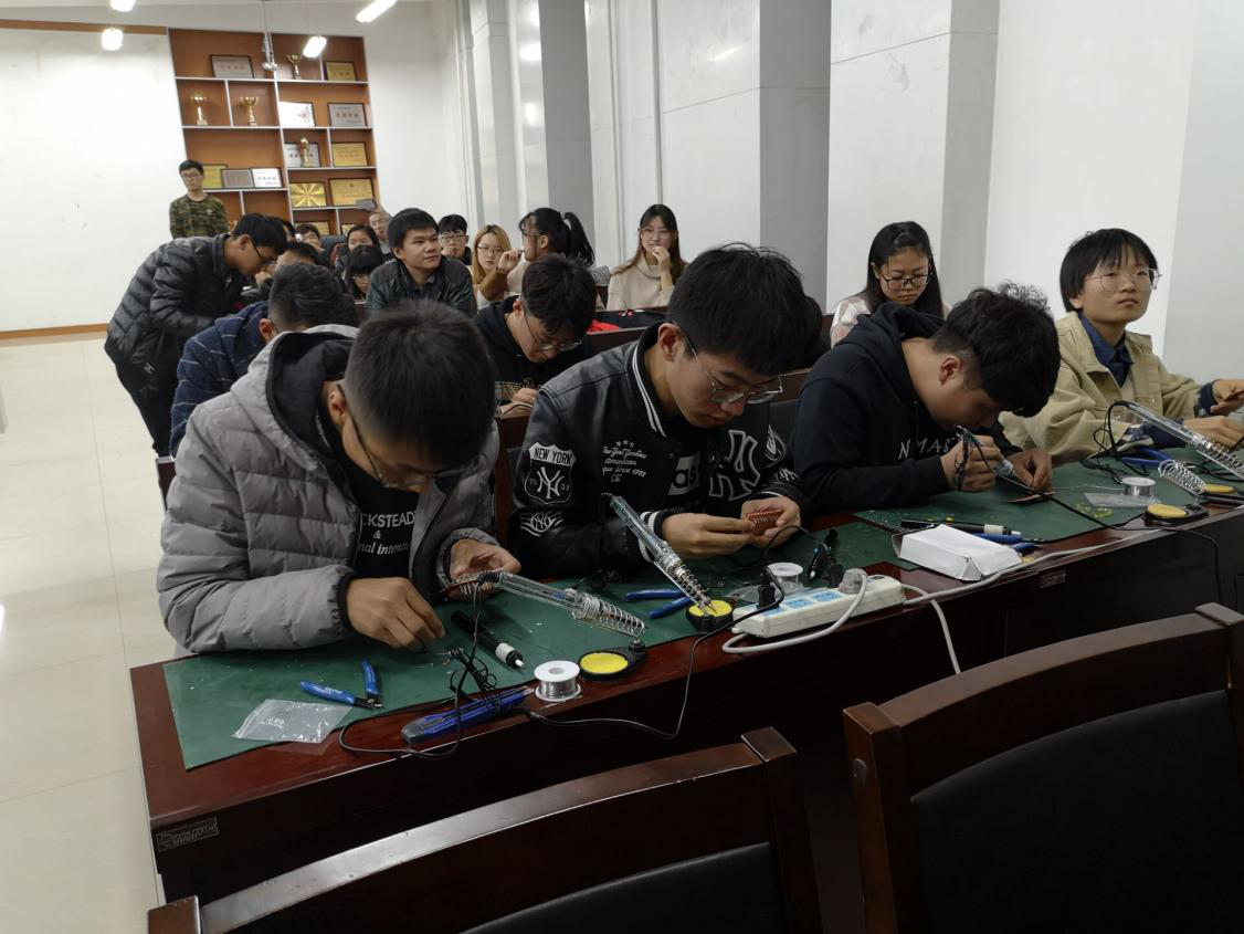 回首了过去,展望了未来,立足现在更加重要。社团成员一一上前为大家展示自己的科创成果,详细地讲述了其中的原理,充分展示了世界杯官网科创社团的实力,得到了老师和同学们极大的赞赏。随后在大一年级几位同学之间展开的焊板比赛更是激动人心,吸引同学都忍不住上前观看,激烈的比赛赢得了阵阵掌声。