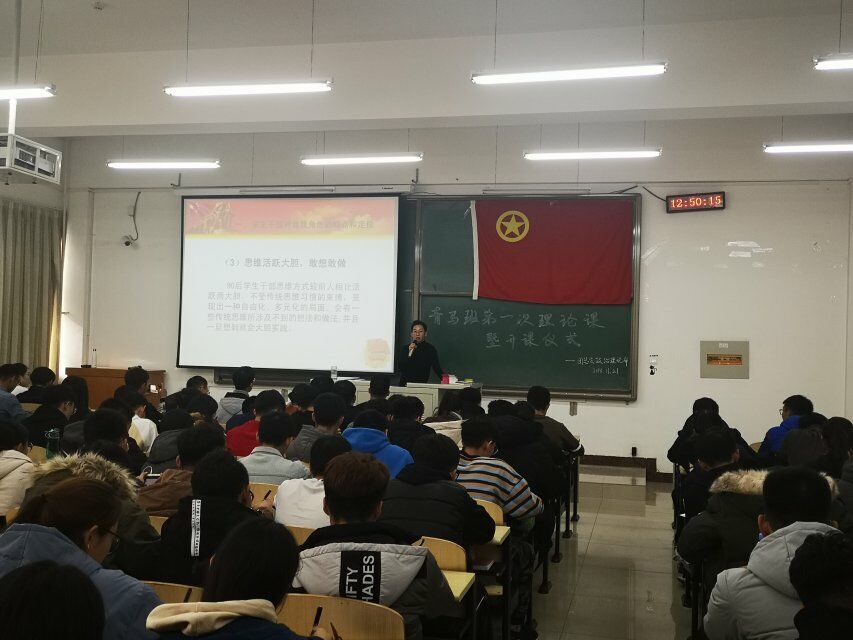 此次以“科学规划未来,描绘精彩人生"为主题的理论课由团总支书记刘新老师主讲。出席本次理论课的还有团总支副书记张恩佑,政治理论部部长班震。刘老师总结了90后学生干部的特点,然后详细阐述了学生干部自身应该如何正确定位,最后他教导学生干部应该如何走好学生干部之路。