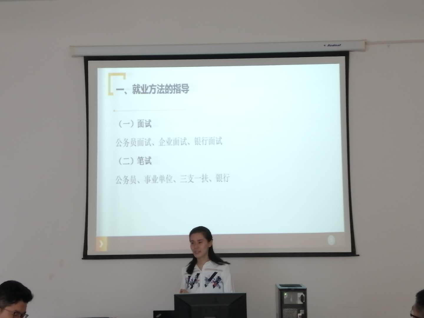 在集体交流会上,首先,由专职辅导员宋东方讲授了就业方法的应用这门课程,课程主要分为两大内容。一是就业方法的指导。就业方法的指导主要包括针对毕业生如何准备笔试内容的复习,如何准备面试内容的复习讲授了许多实用性、技巧性的方法,尤其把课程内容重点落脚在面试备考需要毕业生掌握的方法。二是自我认知与职位匹配,即如何引导毕业生写一份优秀的自荐信或者自我介绍。其次,全体辅导员对如何把就业指导课程讲授的更加成体系化和实用性就行了集体讨论。段志峰副书记认为,就业指导课程既要有统揽全局的高度,同时也要切合毕业生的实际进行指导,提高学生的就业率和加强对学生的职业生涯规划是我们的艰巨任务。专职辅导员靳秀兰老师也对就业指导课程如何讲授提出了自己的想法。靳老师认为,就业指导课程应该更加成体系化,就业指导课程的讲授模式可以打破之前固有的模式,可以采取创新的讲授方法,增加毕业生的兴趣和指导性。