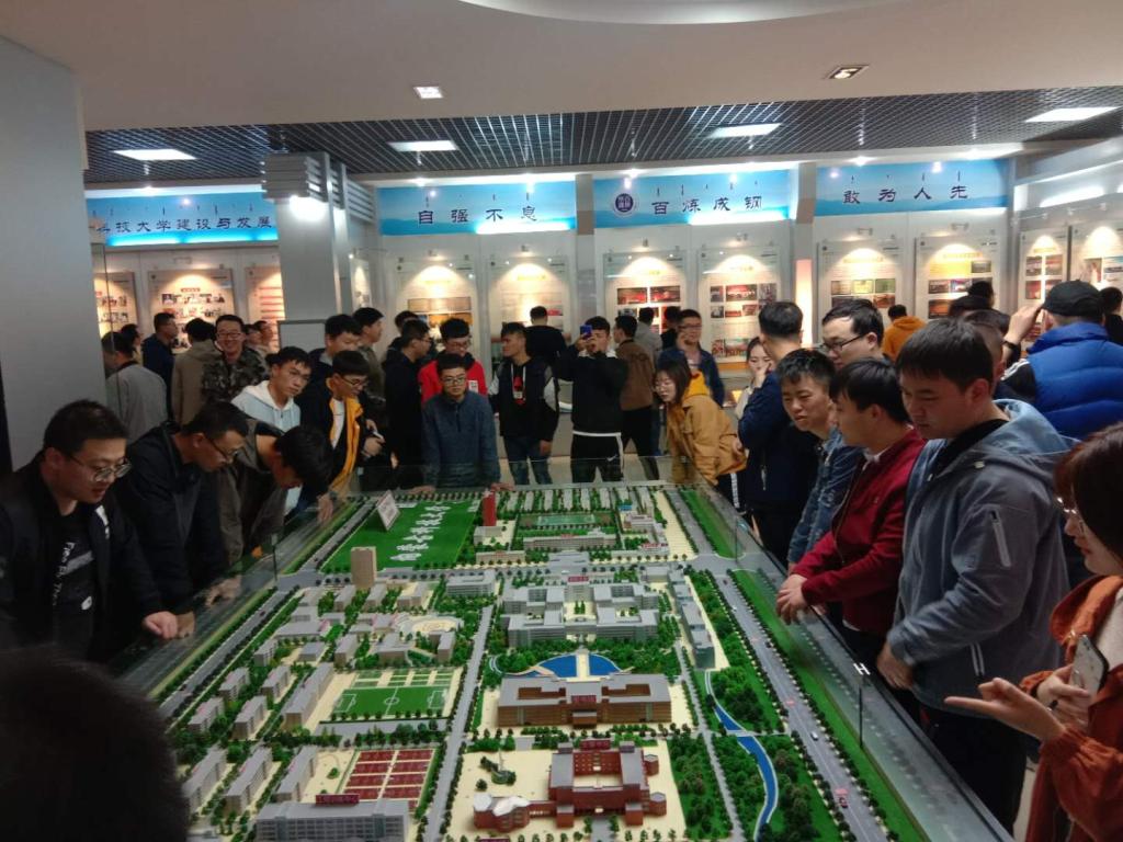 其中最为瞩目的为展现了校园布局规划的沙盘,学生与老师们驻足观看,搜寻着他们熟悉中的操场、教学楼等建筑的身影。