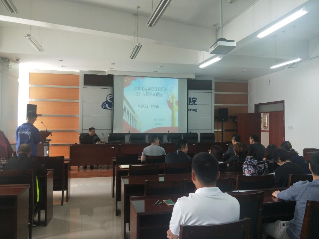 意识形态工作是党的一项极端重要的工作,关乎旗帜、关乎道路、关乎国家政治安全。为提高全体教职工对意识形态的认识,切实增强做好意识形态领域工作的责任感和紧迫感,2019年5月16日下午,世界杯官网意识形态讲座开讲,学院院长李宝山讲授给全体教职工开讲题为“筑牢高校意识形态阵地”的专题讲座。