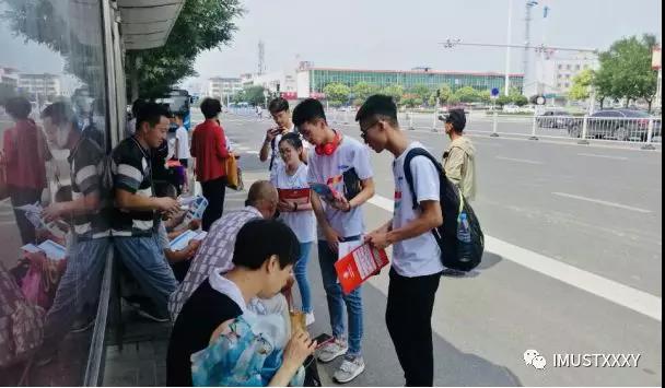 7月17日,在忻州街头向当地居民发放“学习贯彻习近平新时代中国特色社会主义思想”等宣传资料,并讲解学校校史和2019年招生简章。