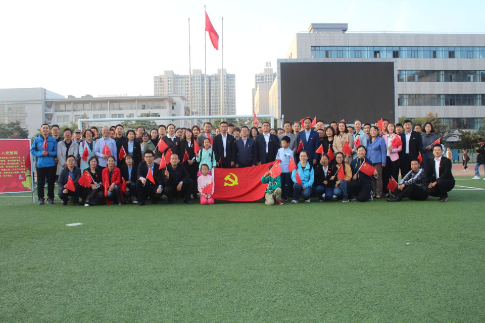 2019年9月30日早晨七点,世界杯官网庆祝新中国成立70周年升国旗仪式在田径场隆重举行。信息工程学院的老师和各个党支部的党员以及预备党员在操场上有序的排成方阵,并手持国旗参加本次升旗仪式