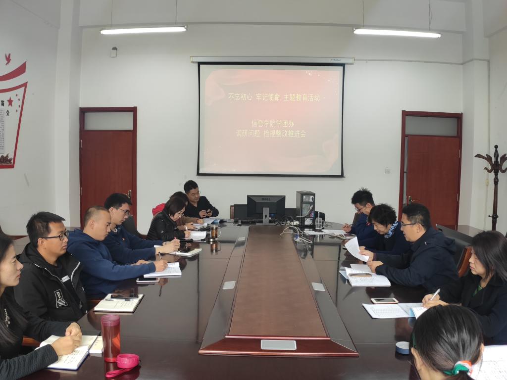 2019年10月15日上午,信息工程学院党总支召开主题教育检视问题整改落实推进会。信息工程学院党总支书记崔桂梅,副书记段志峰,全体专职辅导员参加会议。