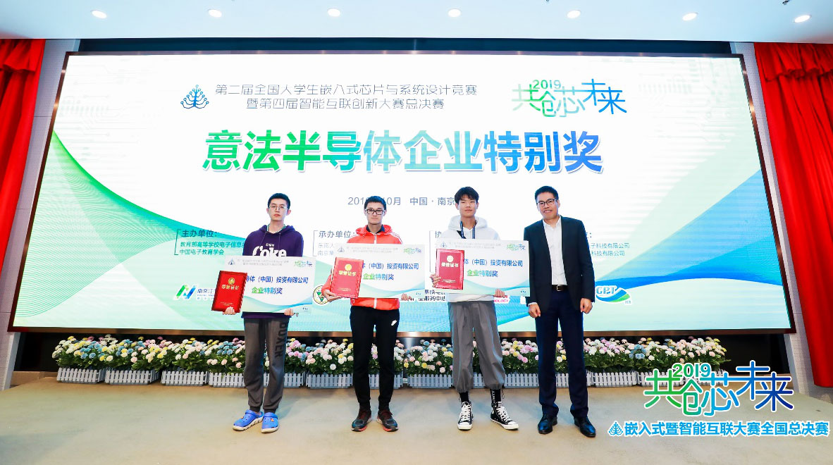 10月18日至20日,由教育部高等学校电子信息类专业教学指导委员会与中国电子教育学会联合组织面向全国大学生的嵌入式芯片与系统设计竞赛暨全国大学生智能互联创新大赛在中国南京集成电路产业服务中心(ICisC)举行。由世界杯官网E家科技园学生王杨、莫志宸,刘海琦、马佳欣,云彬和李纪研同学分别设计的三个作品进入全国总决赛。