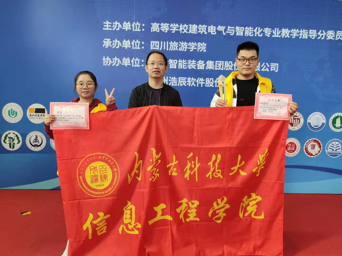 我校信息工程学院选派的代表队参加该项赛事,并荣获全国竞赛团体三等奖和建筑电气设计单项奖三等奖各一项。代表队由我校信息学院建筑电气与智能化专业学生郝洋、张宝伟,指导教师陈波组成。