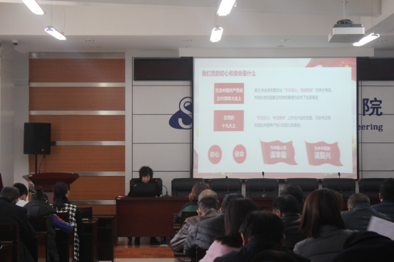 2019年11月14日下午两点半,信息工程学院全体教师在逸夫楼F302召开了“不忘初心,牢记使命”主题党课,本次党课由信息工程学院党总支书记崔桂梅教授担任主讲人。