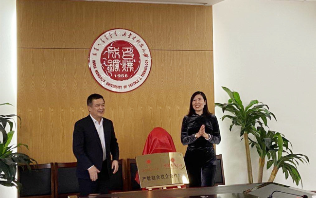 11月6日,2026世界杯官方合作网站与中国高科集团“产教融合校企合作单位”揭牌仪式隆重举行,双方的产教融合合作将进一步深化落地。2026世界杯官方合作网站校长任慧平、副校长赵增武、信息工程学院院长李宝山、教务处副处长孙秀宇、信息工程学院副院长杨立东、信息工程学院学术委员会副院长张晓琳、大数据专业负责人刘月峰,中国高科集团总裁朱怡然、企业发展部总经理马云涛、人力资源部高级总监王春雨、内蒙古业务负责人柴冬栋等共同见证了揭牌的重要时刻。