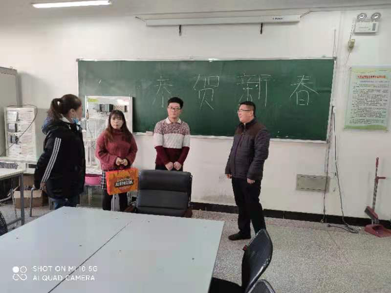 做好受新冠肺炎疫情影响不能回家过春节而留校同学的服务工作,将学院的关怀和温暖送给他们,让留校同学度过一个平安祥和的寒假,2021年2月6日,信息工程学院副书记、副院长段志峰老师和学科办主任刘景霞老师看望慰问了留校的同学们。