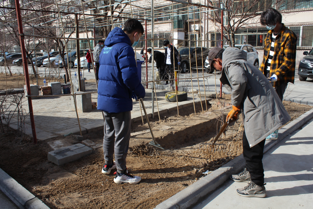 参加党团共建服务的学生党员以及学生干部对环境卫生进行了查缺补漏,清扫了绿化区内的杂草以及烟头等垃圾。
