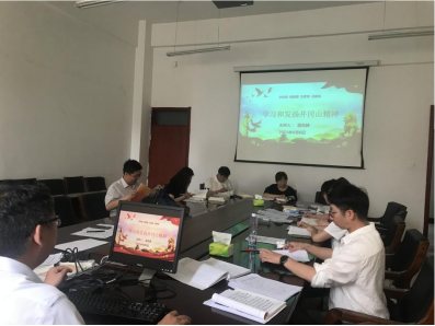 2021年6月6日教工第四党支部组织全体党员集中学习。学院党委书记为支部党员讲授了一次生动的专题党课,党课内容为:学习和发扬井冈山精神。