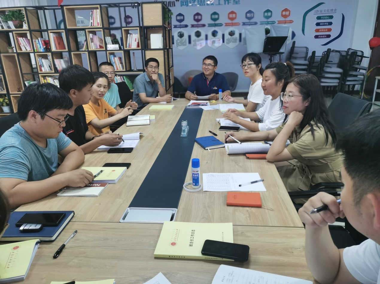会上,刘吉宇老师首先宣读新生班主任名单并讲述班主任主要工作职责,并从学校规章制度、专业入学教育培训会、班主任日常工作应知应会、宿舍管理等方面向新生班主任进行了详细的培训和解读,从政策上和制度上帮助班主任老师快速熟悉工作要求。与会期间,刘吉宇同班主任们分享了许多班主任工作的技巧和班级管理的经验。