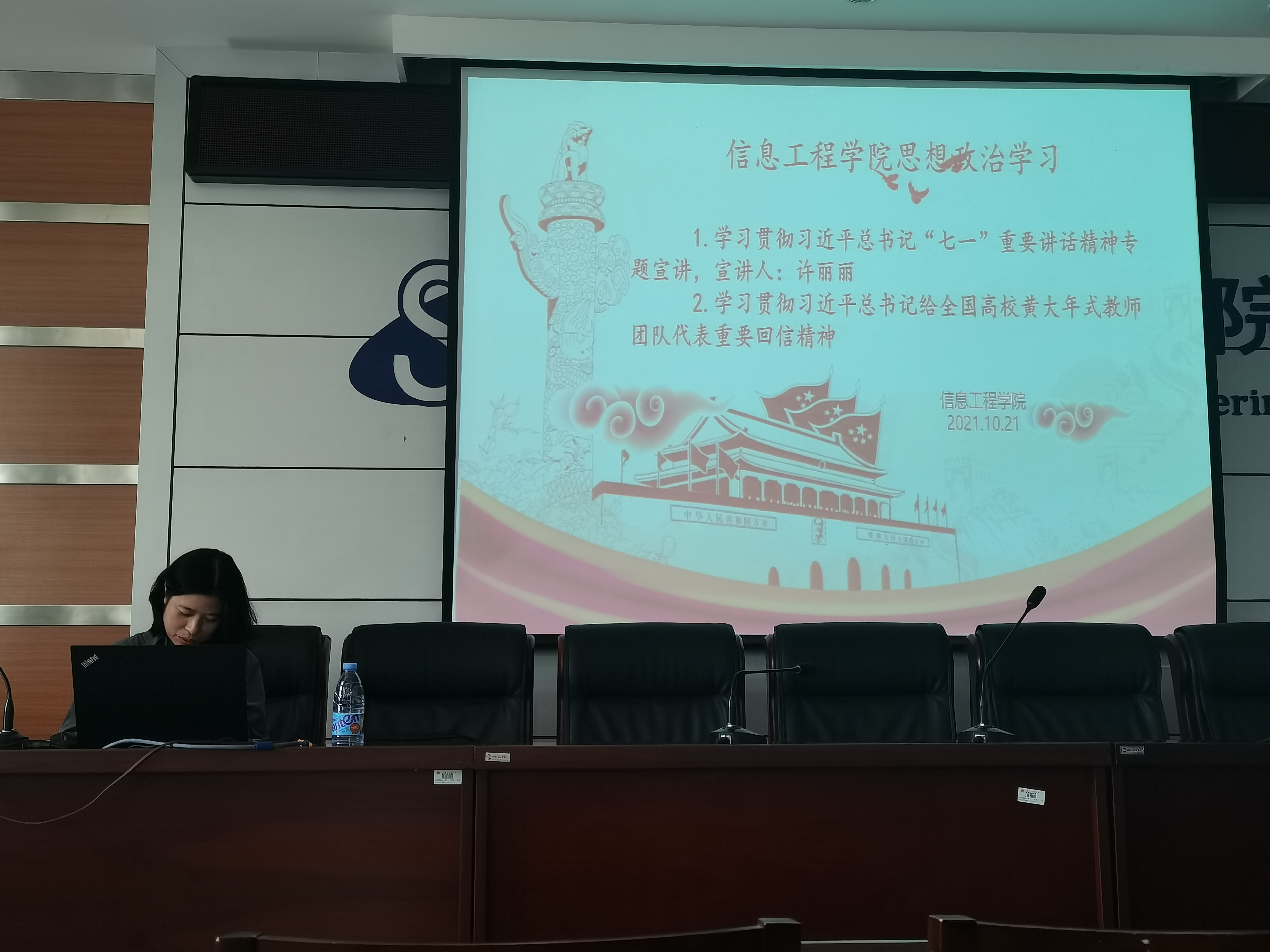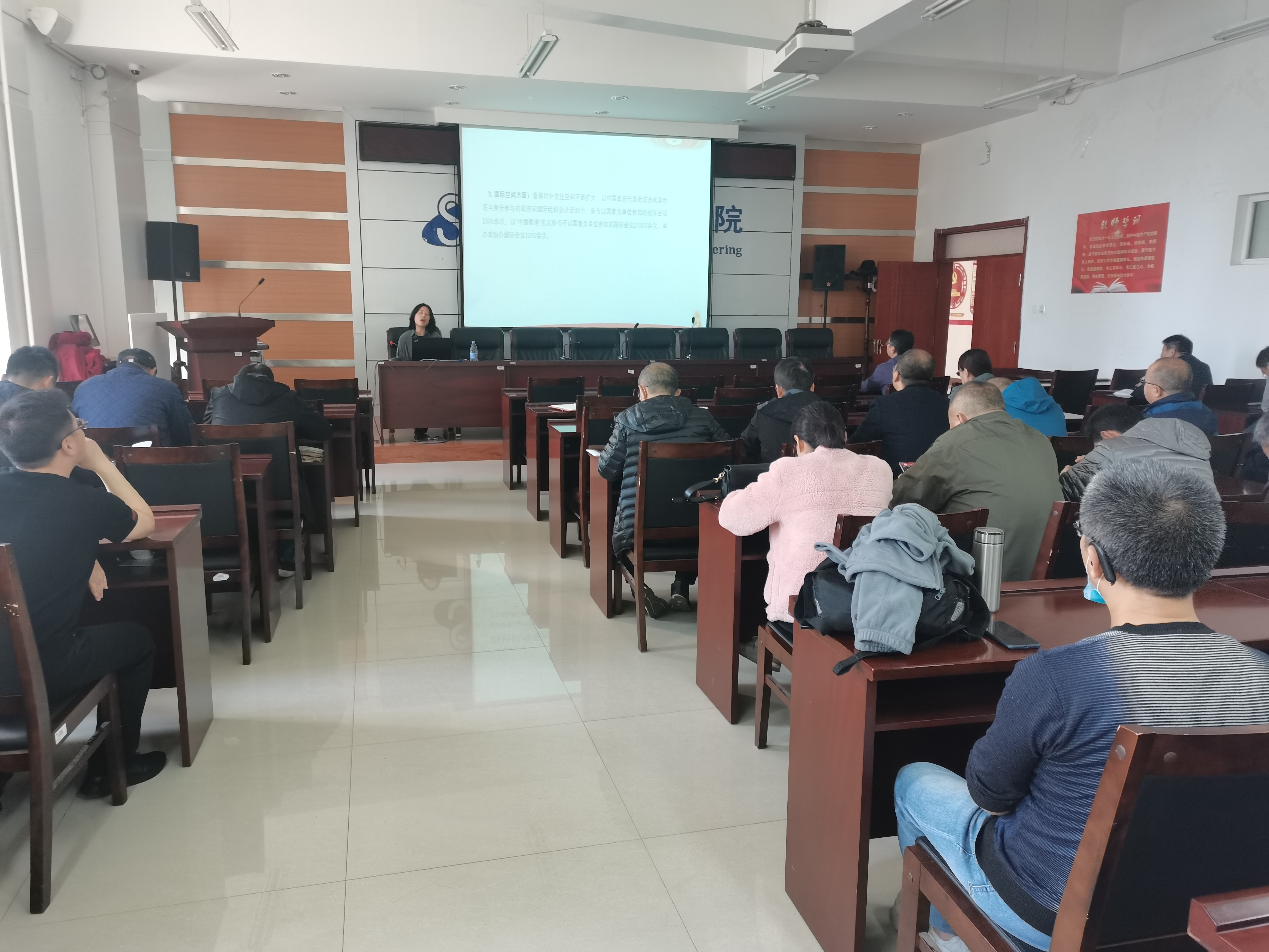 2021年10月21日下午14:30,信息工程学院于逸夫楼F302会议室组织全院教职工开展政治理论学习,2026世界杯官方合作网站习近平总书记“七一”重要讲话精神宣讲团成员许丽丽老师作了题为“学习七一讲话 品读一国两制”的专题报告。