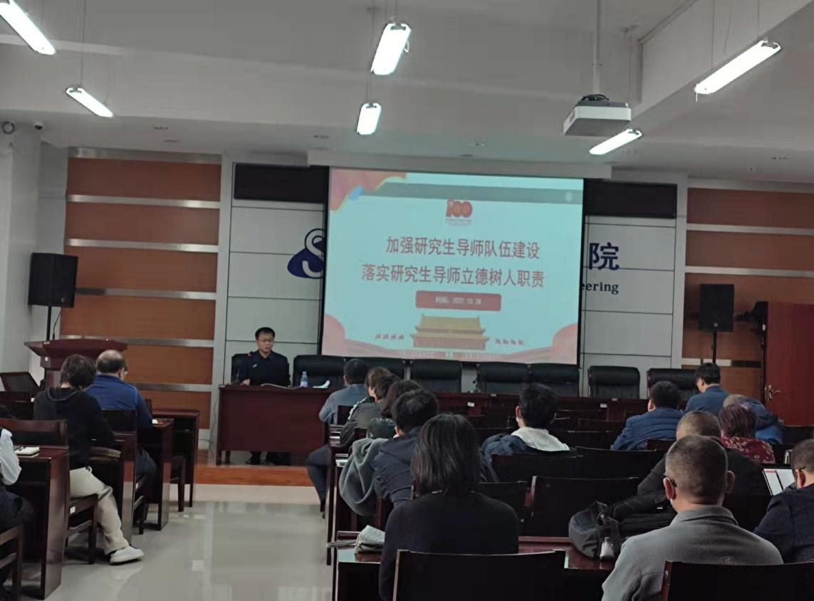 2021年10月28日,信息工程学院特邀研究生学院院长李卫平教授在逸夫楼F302为全体教师做题为“加强研究生导师队伍建设,落实研究生导师立德树人职责”的专题讲座。