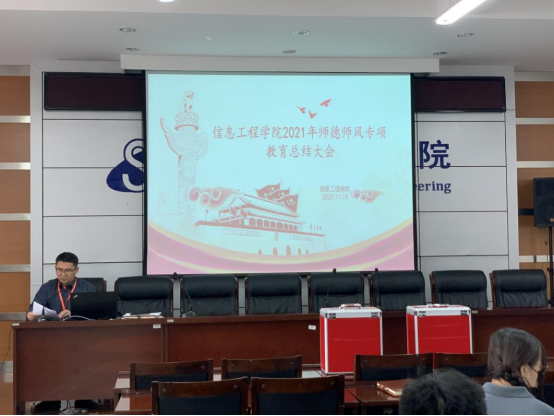 2021年11月18日下午,信息工程学院召开师德师风专题教育总结大会。信息工程学院党委书记段志峰主持会议。