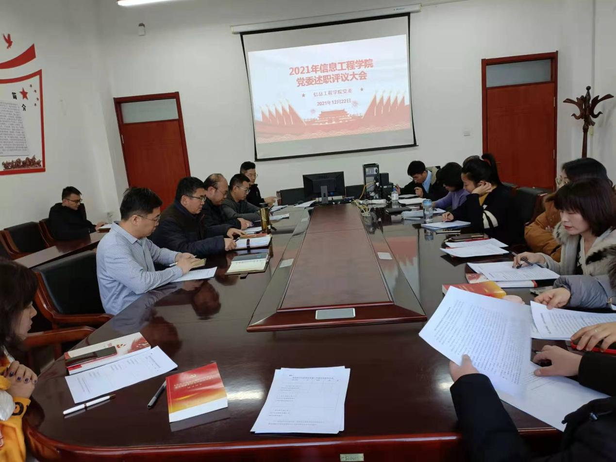 为加强基层党建工作,落实管党治党政治责任,推动全面从严治党向基层延伸,根据学校统一部署,结合世界杯官网实际,信息工程学院党委于2021年12月22日下午4点在逸夫楼F203会议室召开党支部书记基层党建工作述职评议大会。