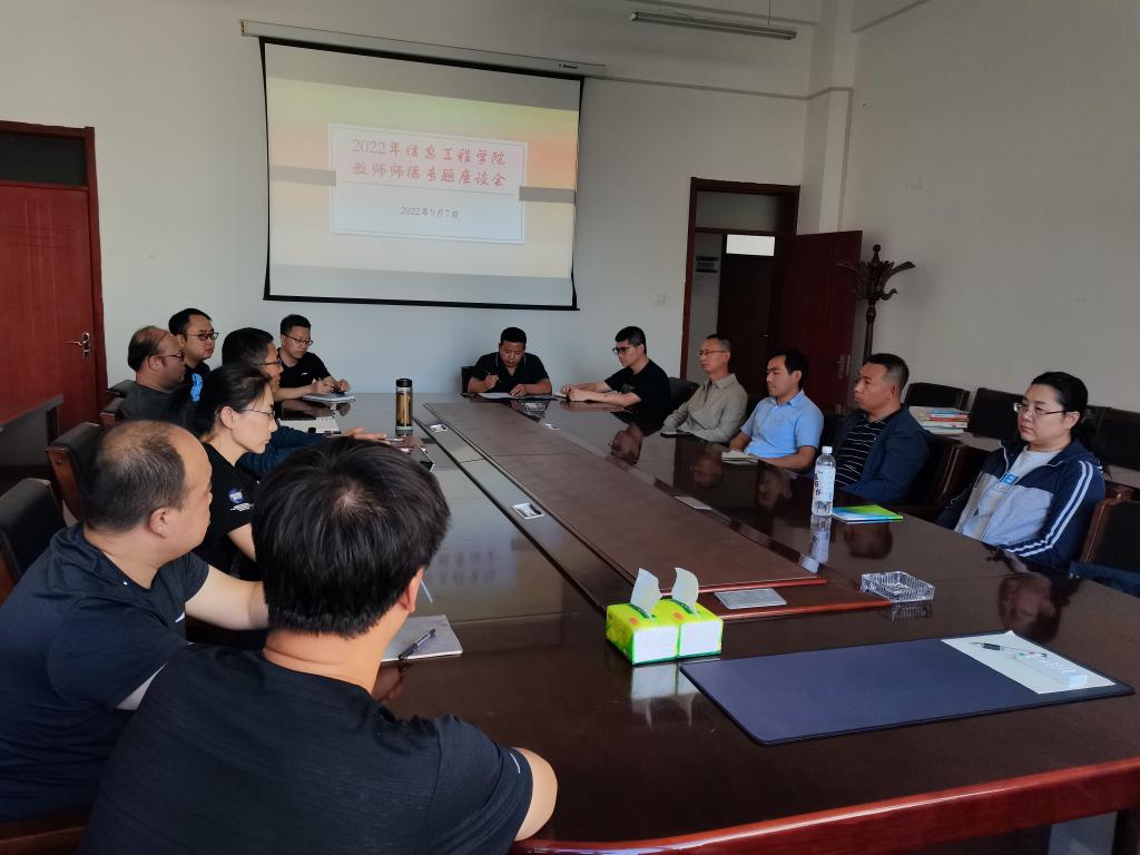 2022年9月7日下午,在逸夫楼F304会议室,信息工程学院召开教师师德专题座谈会,学院党委书记、教学副院长、各系部教师代表参加。