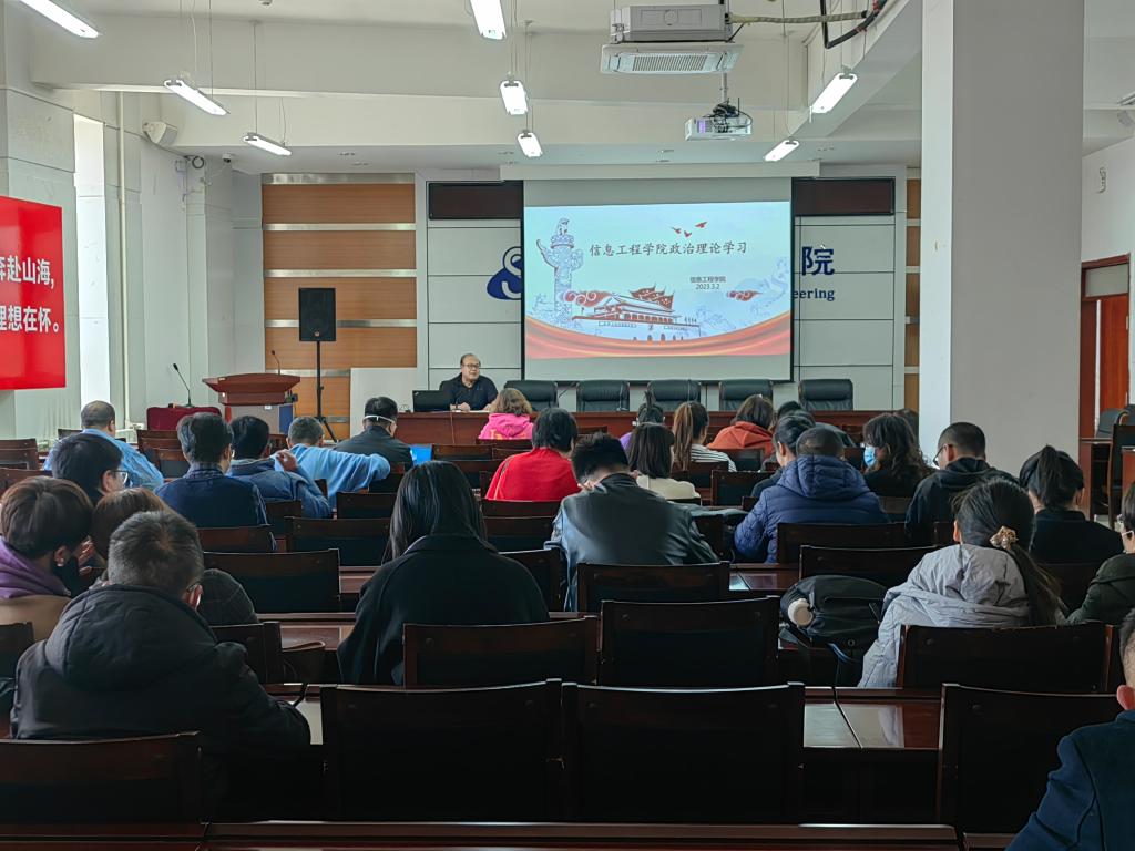 2023年3月2日,信息工程学院召开2023年第一次政治理论学习会议,学院副院长喻大华主持会议,全体教职工参加了此次会议。