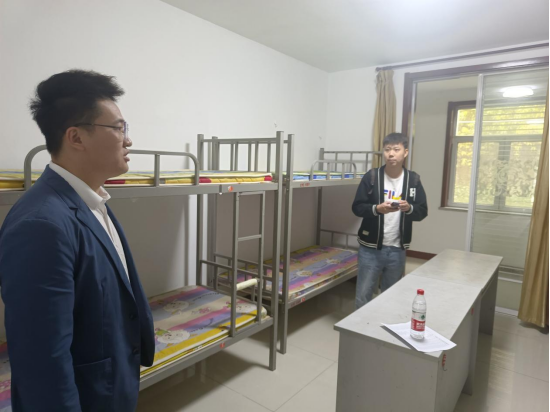 随后,又参观了学生宿舍,对宿舍的环境、设施以及安全等方面进行了检查。并且还与学生们进行了座谈,听取了他们在住宿方面遇到的问题和需求,同时强调安全用水用电,以及交通安全等问题。