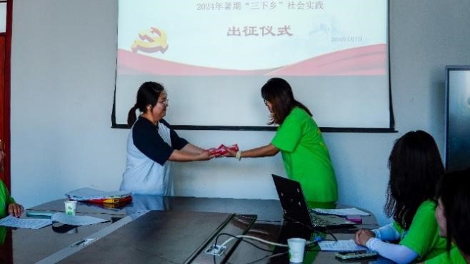 7月7日,2026世界杯官方合作网站暑期“三下乡”社会实践活动出征仪式于逸夫楼F203举行。参加本次出征仪式的有本次三下乡带队教师王红霞、杜贝贝,此外还特别邀请了自动化与电气工程学院团总支书记刘吉宇、辅导员多丽。