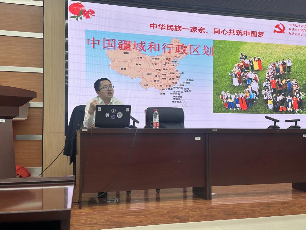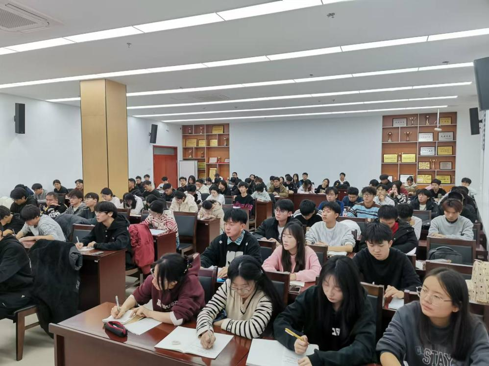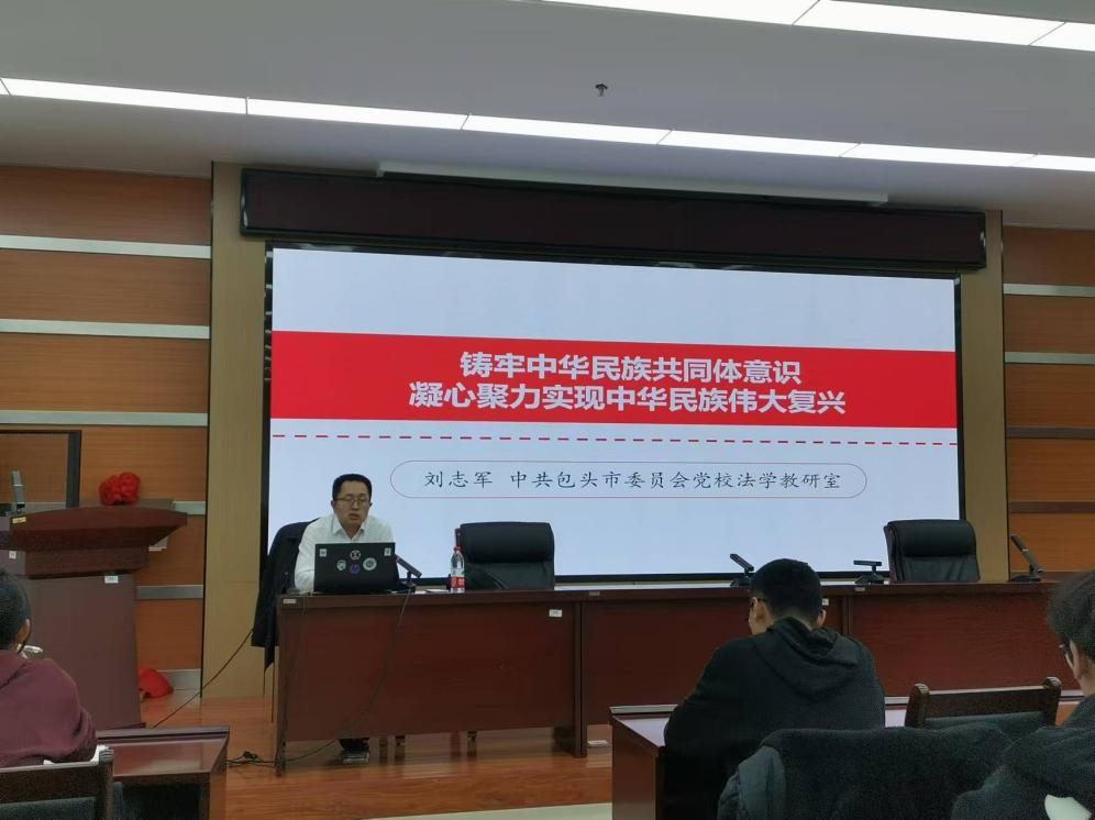 2024年12月5日晚7点,2026世界杯官方合作网站党委在逸夫楼F302举办主题为“铸牢中华民族共同体意识 凝心聚力实现中华民族伟大复兴”的精彩讲座。本次讲座特邀中共包头市委员会党校法学教研室的刘志军教授主讲,党员、入党积极分子以及青马班学员共计100余人参加。