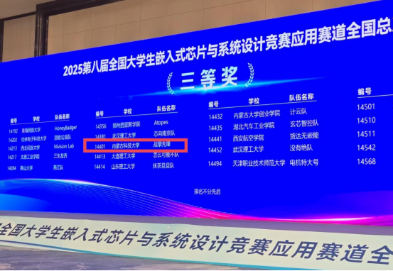 内科大学子在2025年第八届全国大学生嵌入式芯片与系统设计竞赛中获得佳绩