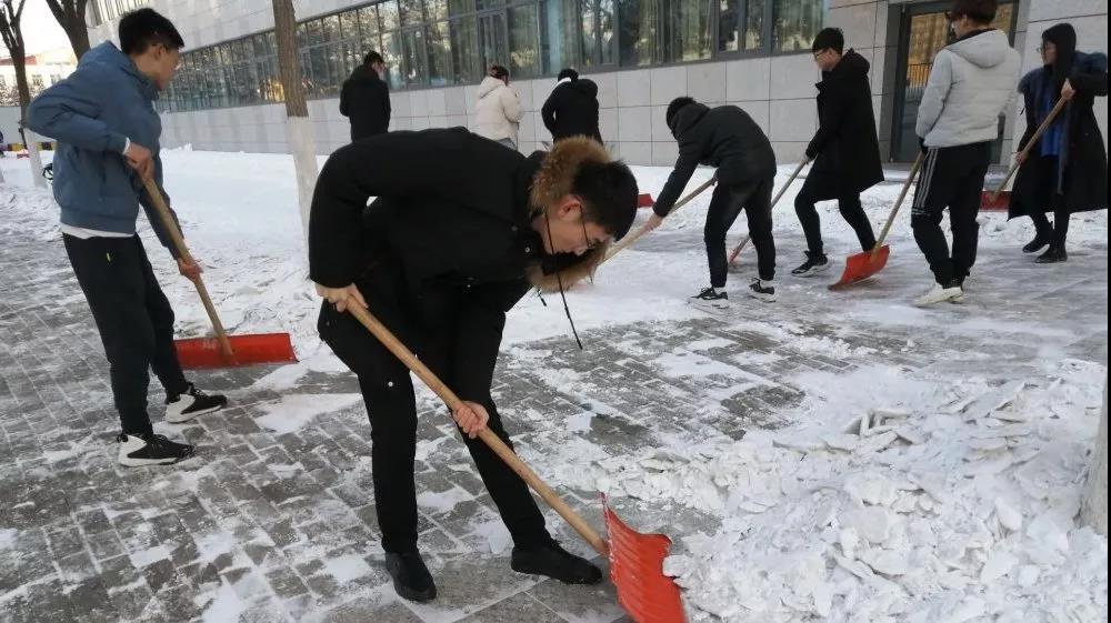 电气支部学生党员带头扫雪,保障师生出行安全
