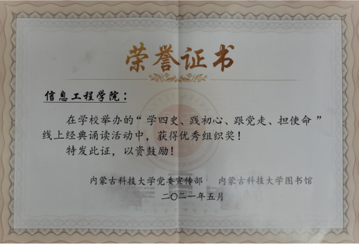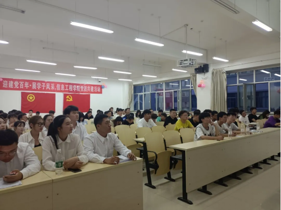 2021年5月30日晚7:40信息工程学院在逸夫楼G204开展“百年华章,以声献礼”党团共建活动。活动以朗诵的形式举办,紧紧围绕庆祝建党100周年,充分结合党史学习教育,引导广大学生全面了解建党百年的光辉历程、伟大成就和宝贵经验,传承奋斗精神,凝聚时代力量。