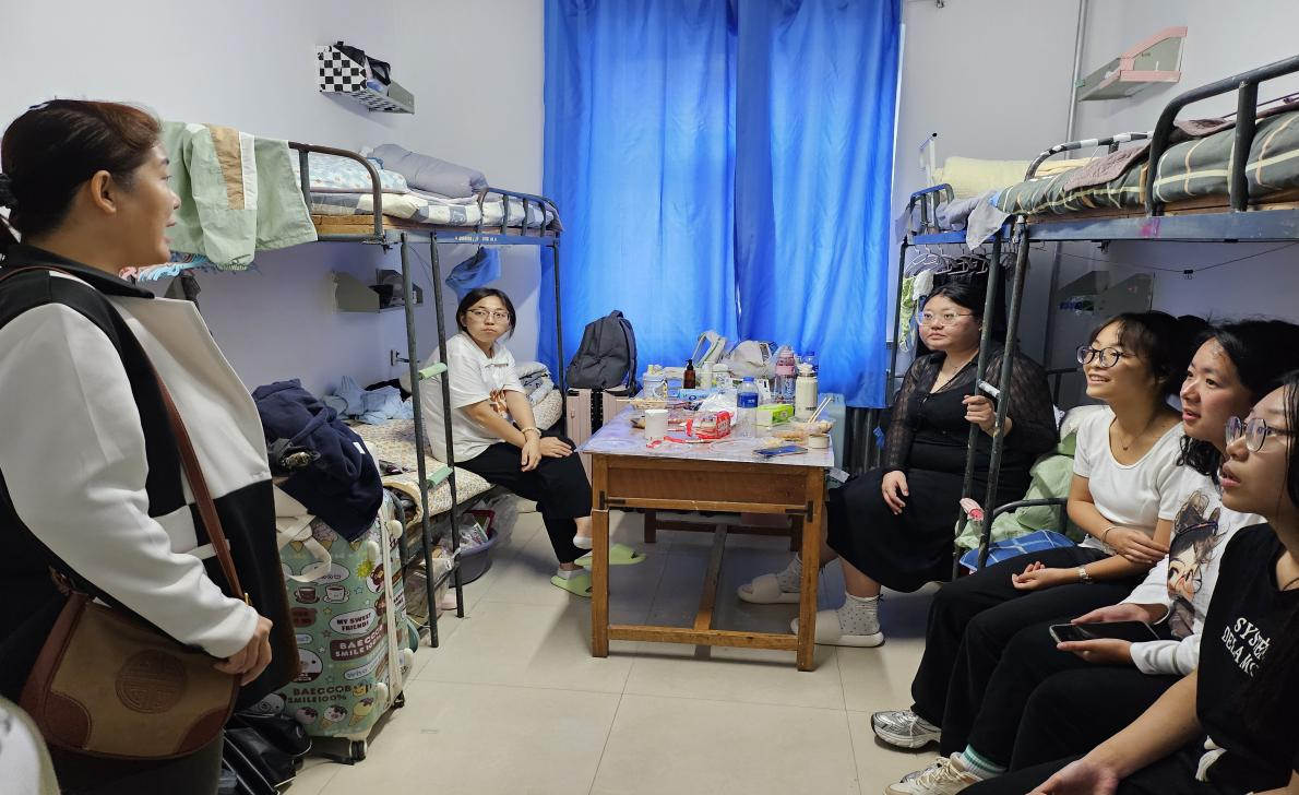 学院领导和老师们走进每一间宿舍,与同学们进行了面对面的交流,详细询问了他们在初入大学校园后的感受,了解同学们在生活、学习等各方面的适应情况,询问新生们是否有啥需求。在交流过程中,学院领导和老师们不仅解答了同学们关于生活、军训等方面的疑问,还就新生今后的学习、生活等方面提出了要求。对于新生们提出的疑问与困惑,领导和老师们耐心解答,鼓励大家勇敢面对新环境,积极投入到即将开始的丰富多彩的大学生活中。学院领导还特别关心新生的心理状态,鼓励他们在遇到挫折困难时要积极寻求帮助,与同学们一起互助成长。