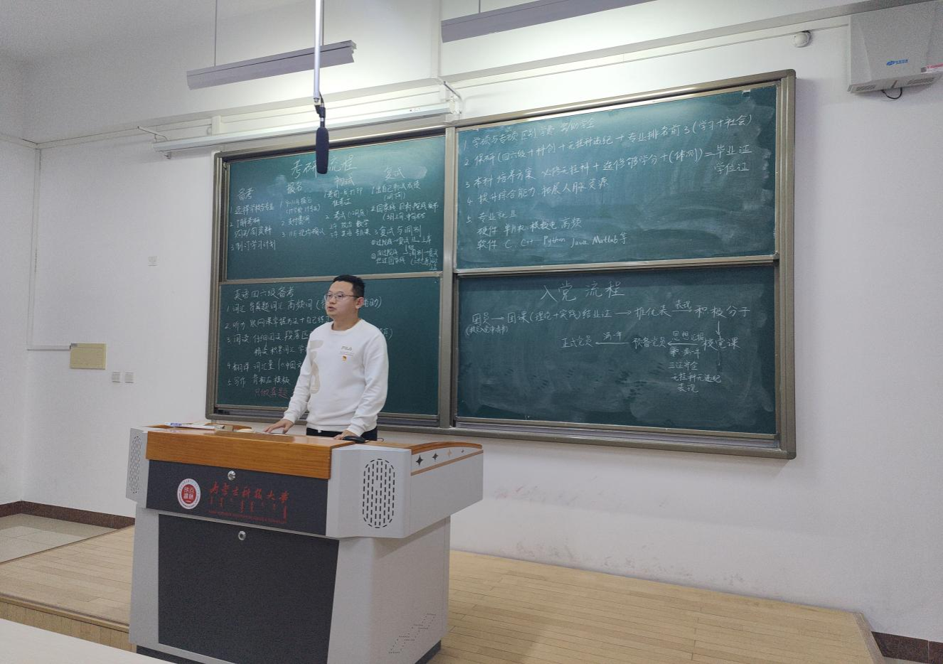 互动提问环节,4名宣讲者详细解答他们在学习生活、社会实践、志愿服务、党团组织、如何学好理论课、如何做好大学规划的种种疑惑,助力同学们在考研路上启程远航,现场氛围热烈而活跃。