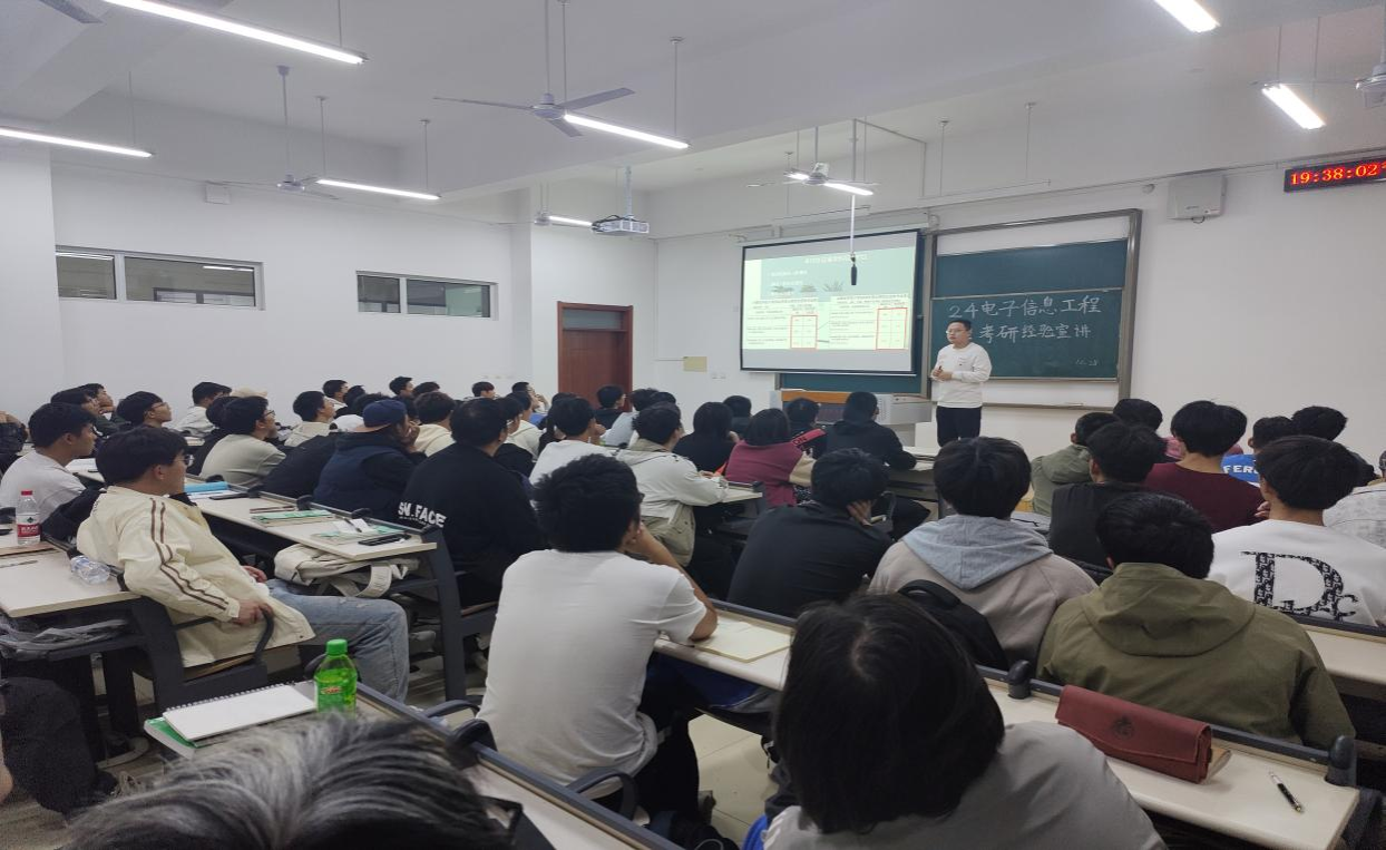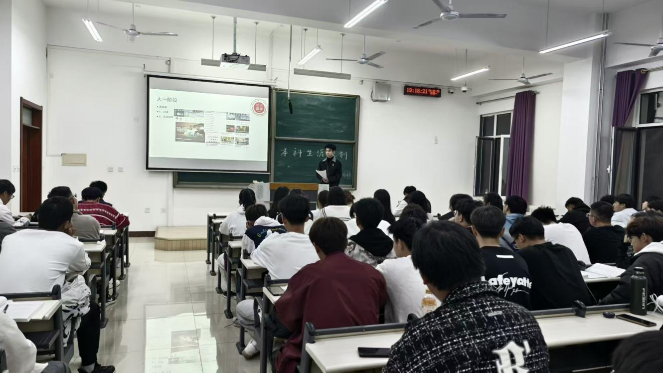 宣讲中,连祎来从大学生活、学习规划、参加社会实践、科技创新入门与参赛、学生工作、学生干部经验、考研最新政策解读、考研时间解析、考研专业/院校选择、复习备考规划等多个维度进行了详细讲解。他现场例举优秀学子现在发展例子与学生工作的优势。崔凡冰以“为什么要考研?”“考研需要具备哪些能力?”“考研能给我们带来什么?”等问题,与在场学生们进行互动问答。范英豪详细介绍了学硕与专硕的区别,他从生涯规划的角度出发,为不同专业的同学推荐了合适的职业类型,帮助同学们明确了考研目标及备考方法。周佳琪围绕考研的专业方向选择、目标院校筛选、复习计划制定等核心议题进行细致剖析。他们以自己的经验告知大家考研是一场持久战,需要同学们有着坚定的信念和合理的规划,提前准备科学规划。引导大家合理规划备考时间,提高学习效率,为自己的未来发展打下坚实的基础。