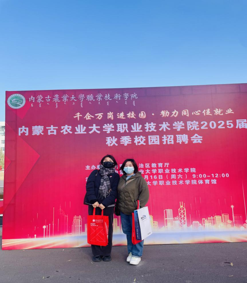 为做好毕业生就业工作,促进毕业生充分高质量就业,学院深入落实“引进来”和“走出去”,积极开拓就业市场,与用人单位进行高效的人才对接服务,大力开展毕业生充分高质量就业攻坚行动,11月16日上午,世界杯官网负责就业的老师李惠娟、王来前往内蒙古农业大学职业技术学院参加2025届秋季校园招聘会,为学院毕业生搭建校企就业平台。