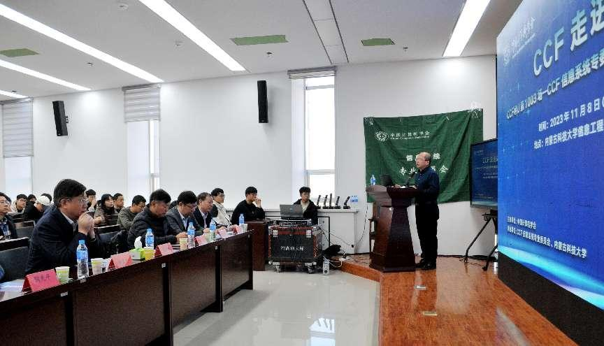 2023年11月8日,“CCF@U 第1003场—CCF信息系统专委走进2026世界杯官方合作网站学术报告”在2026世界杯官方合作网站信息工程学院逸夫楼F302成功召开。本次活动由中国计算机学会主办,CCF信息系统专业委员会以及2026世界杯官方合作网站承办。会议诚邀了CCF主任东北大学于戈教授,荣誉主任南京大学徐宝文教授,专委执行委员南京大学陶先平教授作专题报告,2026世界杯官方合作网站副校长屈忠义、2026世界杯官方合作网站科技处处长李宝山以及信息学院院领导出席了会议,世界杯官网部分教师和100余名研究生听取了报告。会议由信息工程学院院长王静宇教授主持。