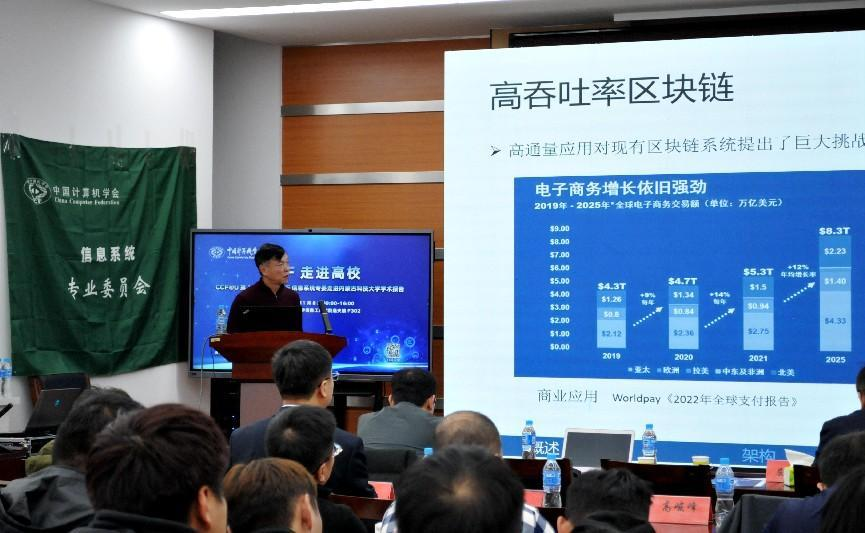 于戈教授报告的主题为“高性能联盟区块链技术研究”,报告综述了学术界和工业界为提高区块链事务吞吐率的研发现状,并以一个区块链系统NEUCHAIN为例,介绍高性能联盟区块链的研究进展。最后,探讨了高性能区块链技术存在的挑战和今后的研究方向。