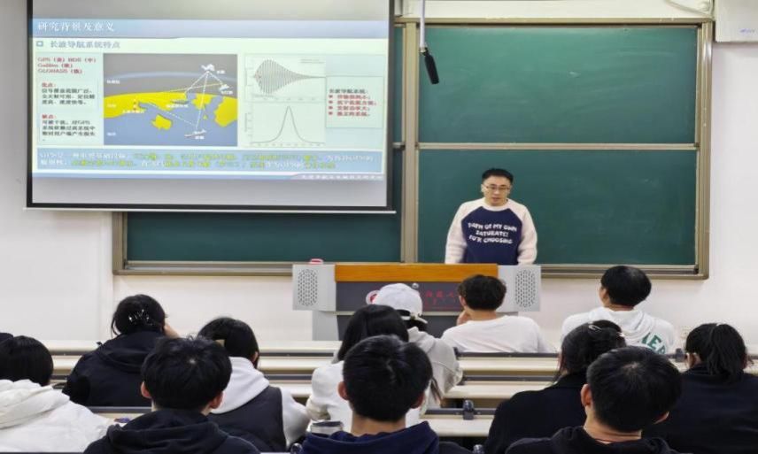 在信息分会场,青年骨干教师麻宏宇为同学们系统讲解了我国长波导航系统的发展历程与产业化应用现状,为同学们的科研思路提供了重要参考。